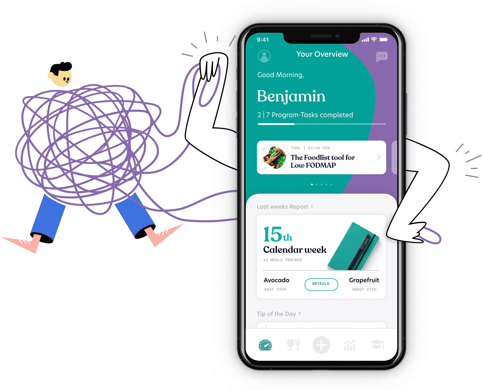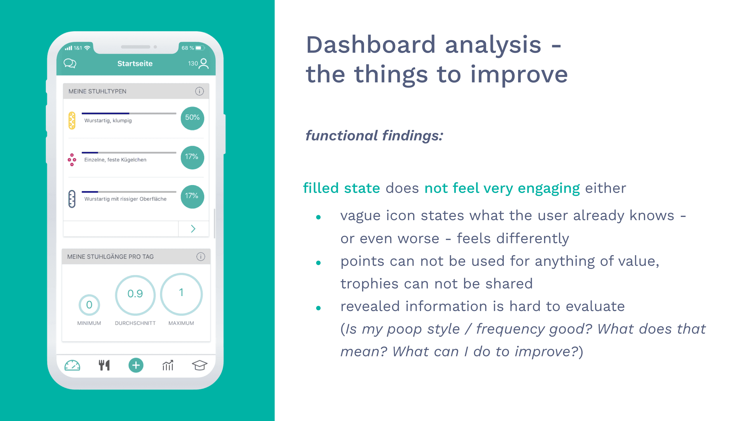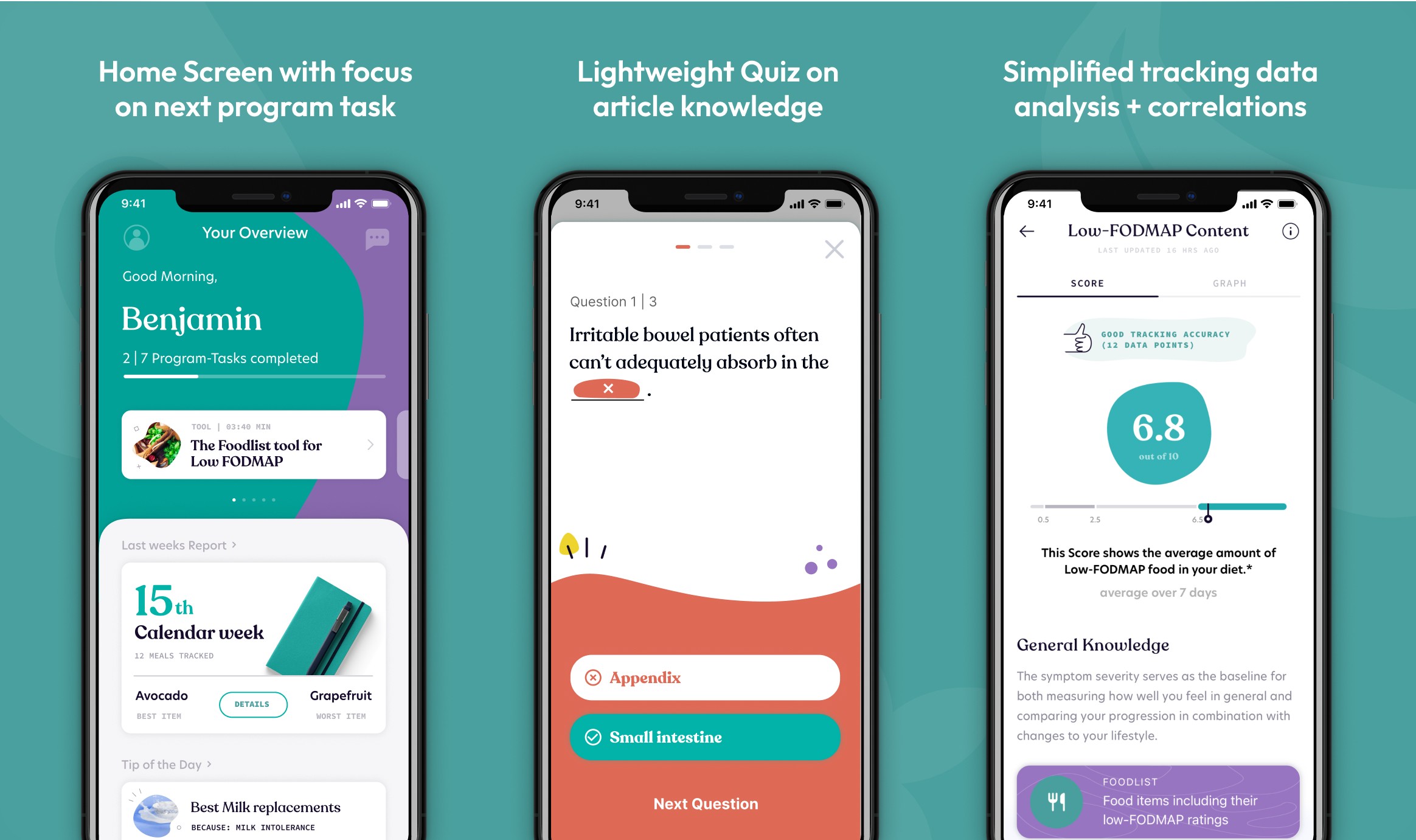 The product vision and feature set had to adapt from a plain analytical food & stool tracker tool to a companion that augments the traditional medical treatments: It explains, consults, and offers practical help. With the data it generates, it can also help doctors diagnose a users conditions more easily.