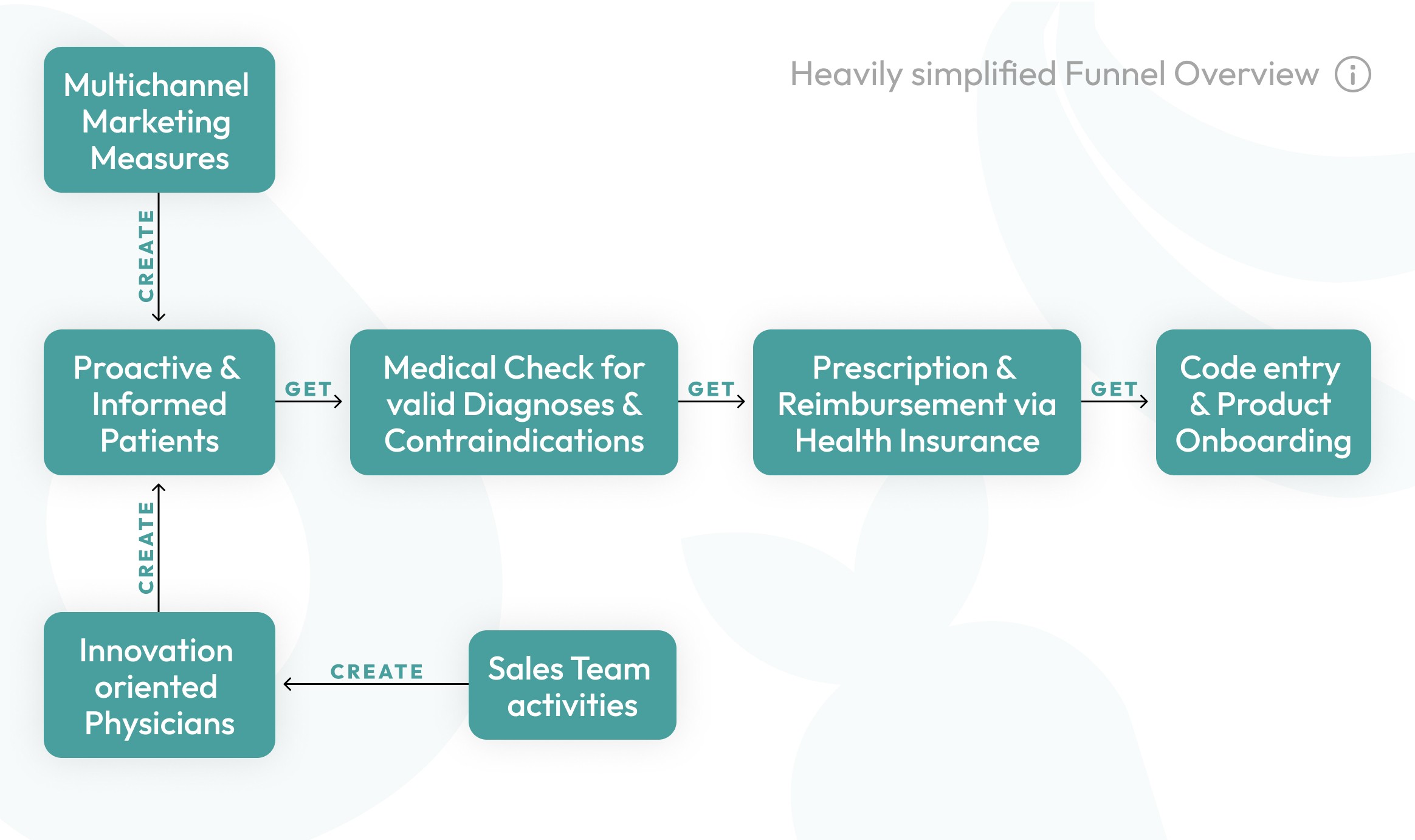Marketing efforts & customer journey existed in rough outlines but suffered under the indirect & complex payment approach of reimbursement via users’ health insurances.
