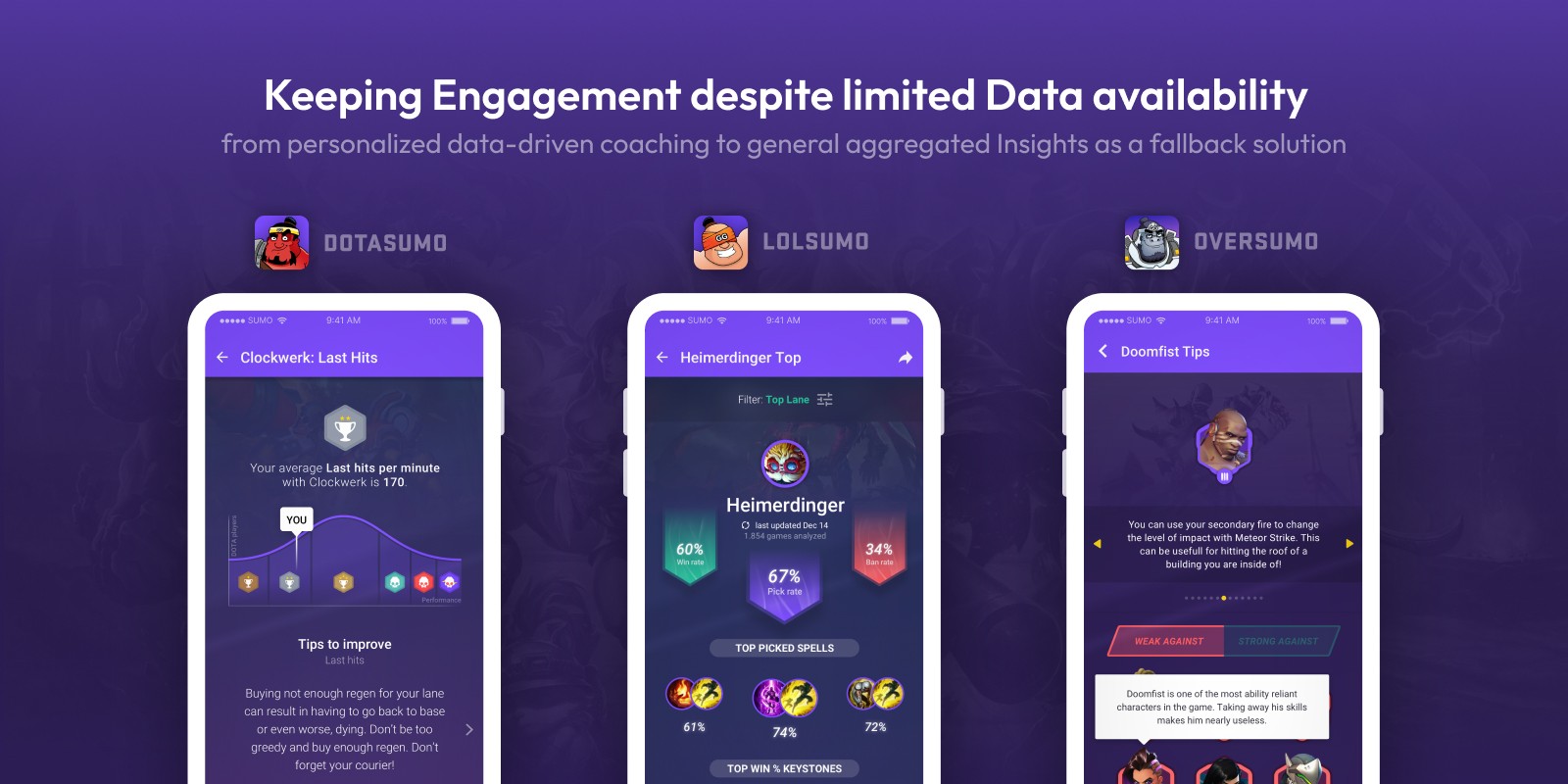 SUMO became a family of mobile coaching apps helping players improve in competitive titles like LoL, Overwatch, and DOTA 2.