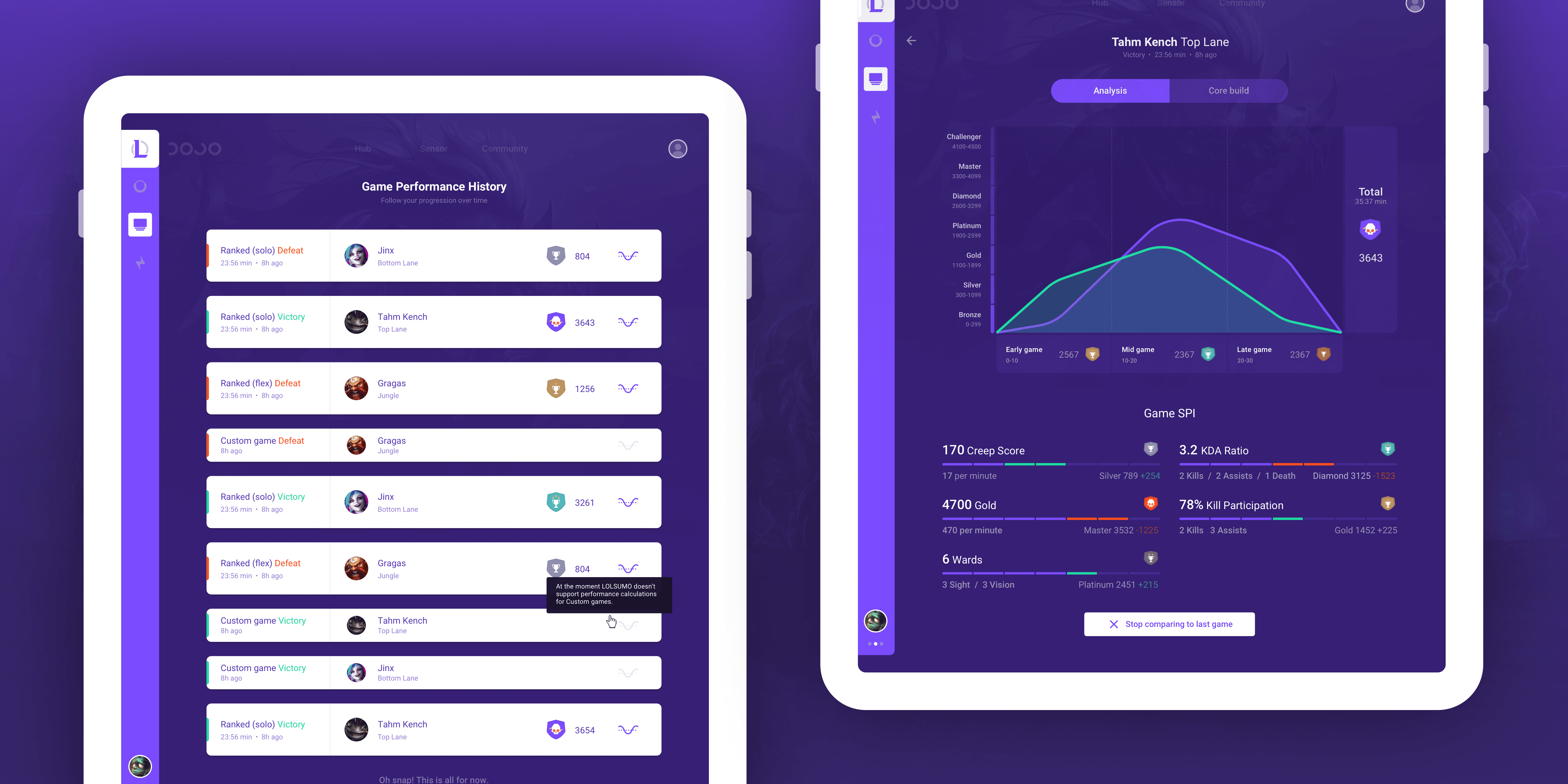 We combined player-specific stats with scraped community knowledge and aggregated performance patterns to offer actionable tips. By using progressive disclosure and contextual explanations, we kept users informed and engaged even when full data wasn’t available.